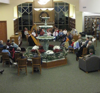 My final two performances of 2009 were back-to-back library concerts of Christmas music. In spite of the cold weather, both were very well attended. The afternoon performance was at the Peabody Public Library in Columbia City, Indiana. The photo below is from the evening concert at the Carnegie Public Library in Angola, Indiana.