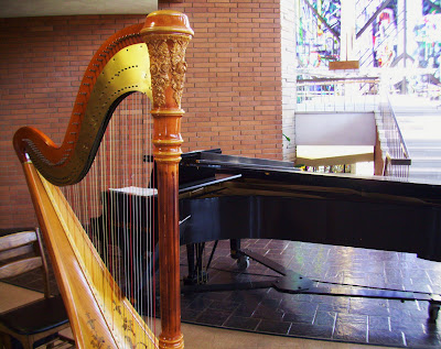 The maid of honor for this wedding was also a harpist, and recommended me to her friend. For this wedding, the bride opted for a harp & piano duet. The Chapel has a 9-foot Baldwin grand piano. Along with the harp, the sound really filled up the huge sanctuary!