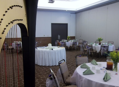 On Friday, I was hired by the daughter-in-law of the celebrating couple to provide harp music for the party she was hosting for them on Sunday afternoon. It’s never too late to call and check my availability!
