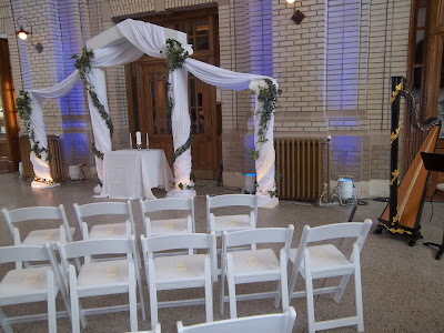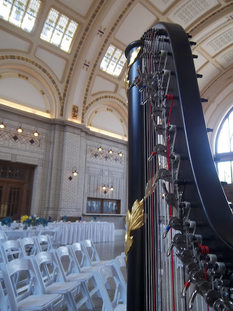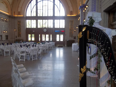 If you’ve never had the chance to visit the Baker Street Station in Fort Wayne, go! It is a beautifully restored train depot that not only houses offices, but also opens up the grand lobby for weddings and other private events. I was the harpist for a wedding there last Sunday, and it is stunning!