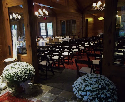 After the ceremony, guests began the cocktail hour on the patio as the reception hall was re-set for dinner. It was cold and rainy, so the staff from the Homestead Resort made sure it was done quickly so everyone could get back indoors! When it was set, the guests came back in the banquet room, and I played through the remainder of the cocktail hour, entertaining with popular songs ranging from the 1970’s through the present.