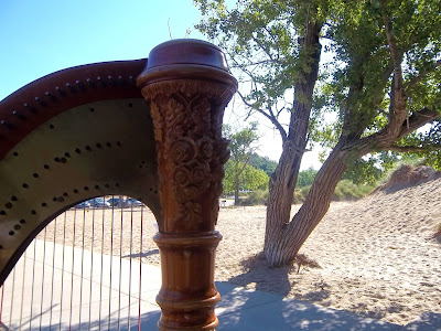 If you are planning a beach wedding, the harp can be the perfect musical complement to your day!  In addition to the large concert harps I offer, I also have more portable Celtic-style harps that can be placed directly on the sand (here, we had a solid concrete surface to set up the Venus Classic harp).  Visit my website ~ Holland Michigan Harpist ~ for details!