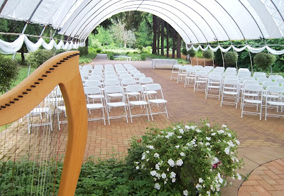 The pastor officiating the ceremony arrived shortly after I did, so we were able to go over all of the music cues with plenty of time to spare before guests began to arrive. It’s nice not to have to try to do that when I’m already playing prelude music! Amy chose “Fanny Power” ~ a piece by the Irish harpist O’Carolan ~ for her bridesmaids’ processional, and the traditional “Bridal Chorus” for her entrance music. With the Irish music Amy chose, the Celtic style of my BlevinSong harp was a perfect match!